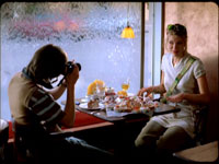 Кстати, нечто подобное - фильм-настроение, основанный на довольно слабеньком сценарии - пытался сделать Люк наш, понимаете, Бессон со своим "Ангелом-А". Только у Бессона не хватило денег на цветную пленку, поэтому настроение получилось похоронным и лента совершенно не удалась. А у Оксаны Бычковой картинка яркая, светлая, спокойная и какая-то очень естественная - поэтому фильм получился, несмотря на все недочеты.