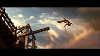 Со всякими сражениями, паркуром и прочими мужскими играми на свежем воздухе - все очень хорошо. Сцена захвата Аламута снята замечательно, традиционные акробатические этюды принца Дастана выглядят отлично и, кстати, не затасканно (паркурную акробатику ставил сам Давид Бэлль), декорации смотрятся просто роскошно. Так что вложенные в картину двести миллионов явно пошли на дело.