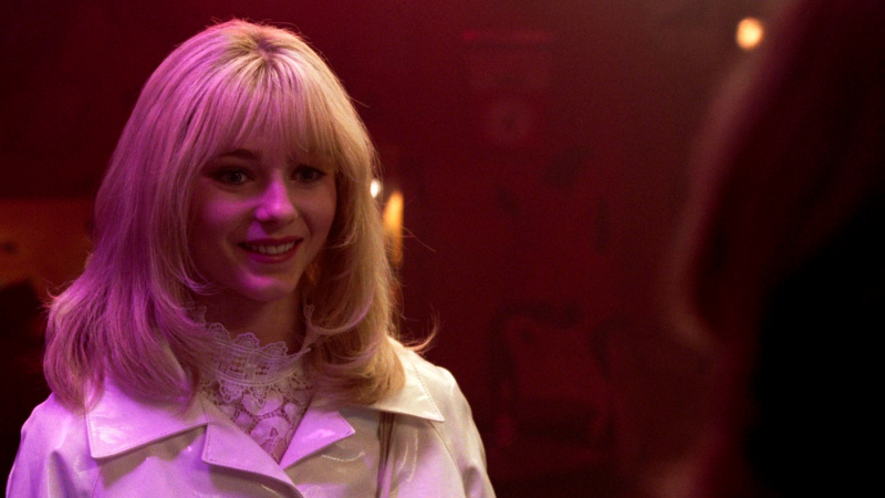 В первую же ночь, когда Элли засыпает под свою любимую музыку из шестидесятых, которая проигрывается с виниловой пластинки (девушка привезла с собой коллекцию винила), она переносится в те самые свингующие шестидесятые - там Элли наблюдает за очень уверенной в себе и эффектной блондинкой-старлеткой Сэнди (Аня Тейлор-Джой), которая намерена завоевать Сохо.