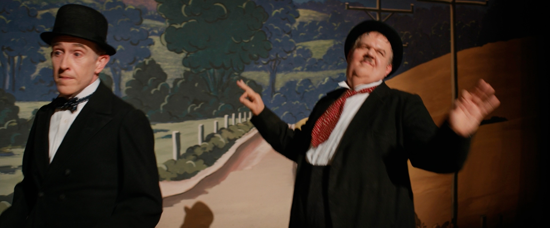 Актеры на роли Лорела и Харди подобраны изумительно. Я не сомневался в том, что Джон Си Райли блестяще сыграет Оливера, - так оно и оказалось. Спокойный и совершенно неконфликтный человек, он всецело доверял Лорелу, но и в их отношениях, разумеется, были определенные проблемы и шероховатости. Харди понимает, что он должен уйти, потому что со своим больным сердцем имеет шанс умереть прямо на сцене, но он также знает, что Лорел без него выступать не сможет. Его последний танец - тот самый знаменитый  танец из фильма Way Out West - ну просто комок в горле. Тем более что из зала на него смотрит жена Люсиль, которая прекрасно понимает, что происходит.