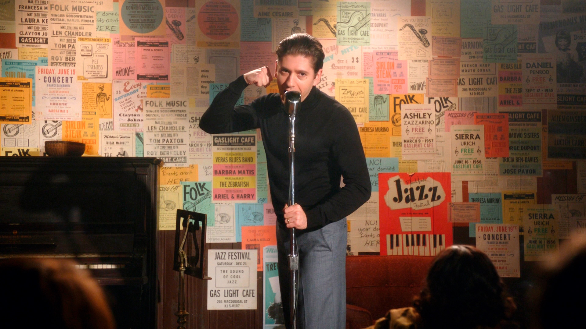 Тем не менее в какой-то момент обстановка, что называется, перестает быть томной. У Джоэла есть свое хобби: он считает себя талантливым стендап-комиком и периодически стендапит в заштатной кафешке под названием "Газлайт", где бесплатно разрешают выступать всяким доморощенным "талантам".