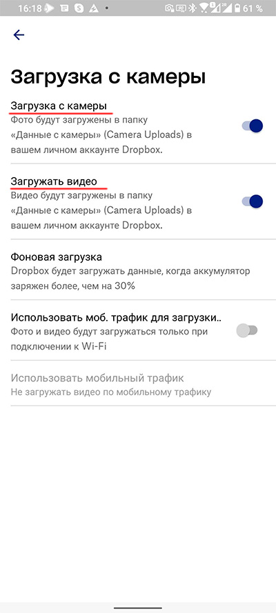 Внимание! У всех этих сервисов по умолчанию загрузка в облако фото и видео выключена. (И это очень правильно, сервис не имеет права без явно выраженного желания пользователя сохранять на своем сервере какие-то его личные медиаданные.)